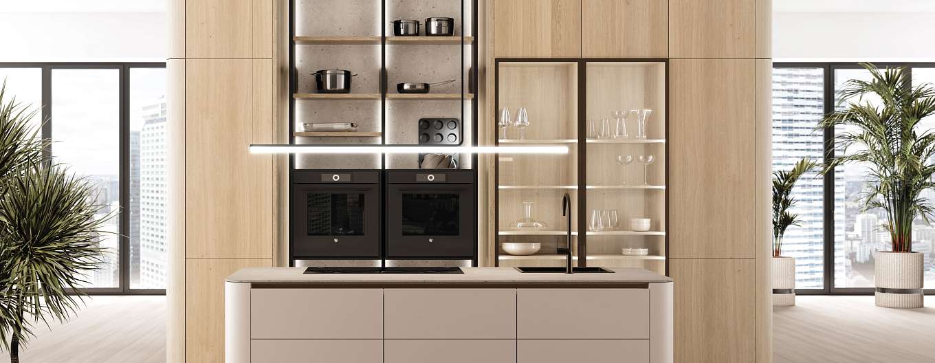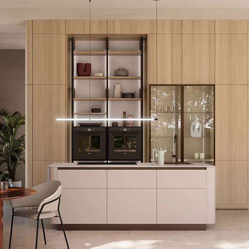 CLASSIC-FS в матовом лаковом тоне мохера впечатляет спокойной элегантностью и первоклассным мастерством. Изогнутые боковые панели органично вписываются в общий дизайн — их внутренние стороны точно выровнены с видимыми фасадами. Компактная рабочая поверхность из материала с натуральными включениями и живой текстурой подчеркивает изысканный вид. Щедрые радиусы углов плавно переходят в изогнутый силуэт. Мягко закругленные панели и столешницы завершают скульптурный характер, придавая кухням и жилым помещениям стильную домашнюю атмосферу.